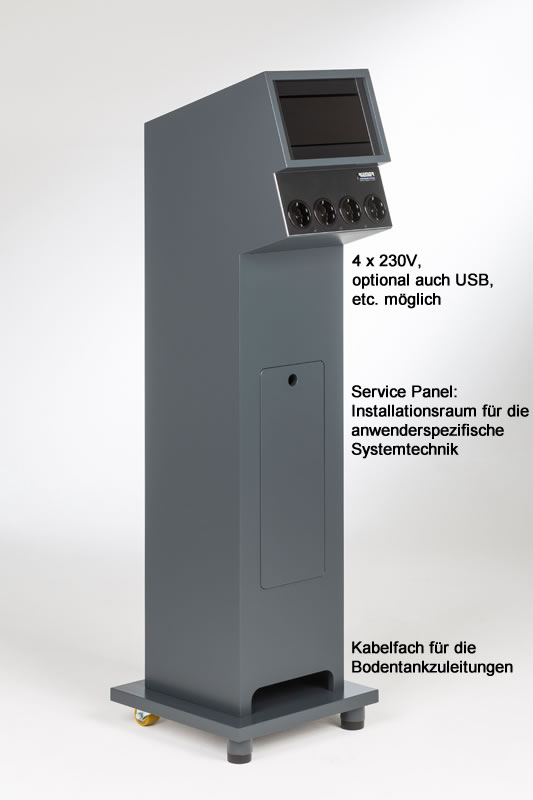 Standardmäßig ist der HelpDesk mit 4 x 230V Anschlüssen ausgestattet.